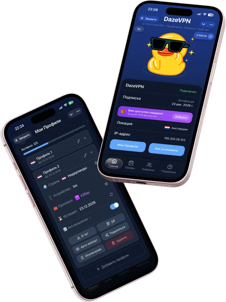 Открывай DazeVPN в Telegram, создавай профиль и подключайся